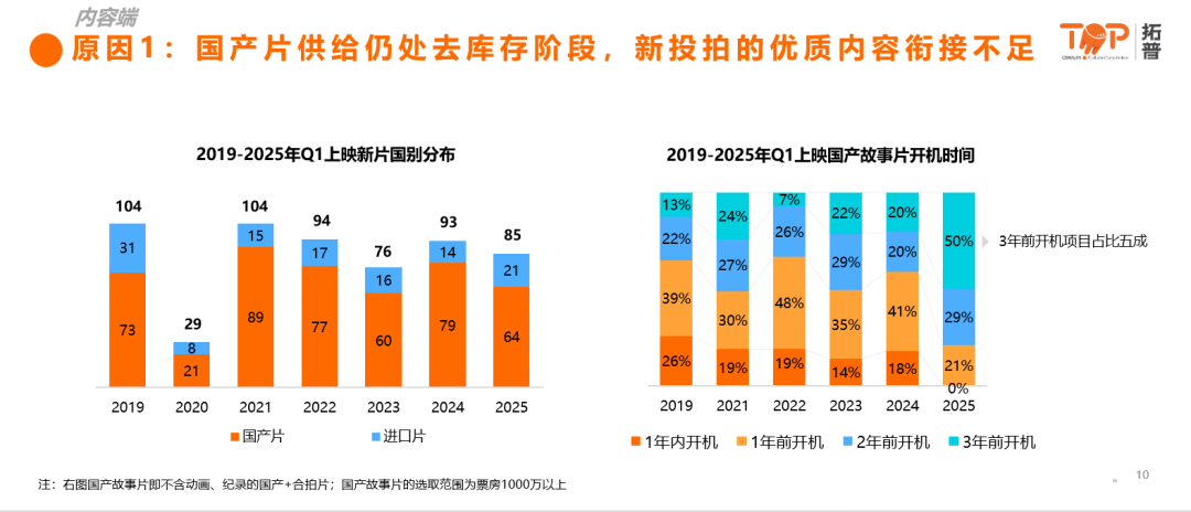 据该机构此前发布的《2025年中国电影市场困境与增长新机》对第一季度相关数据进行分析,影片投拍数量欠缺的情况已经显现。”